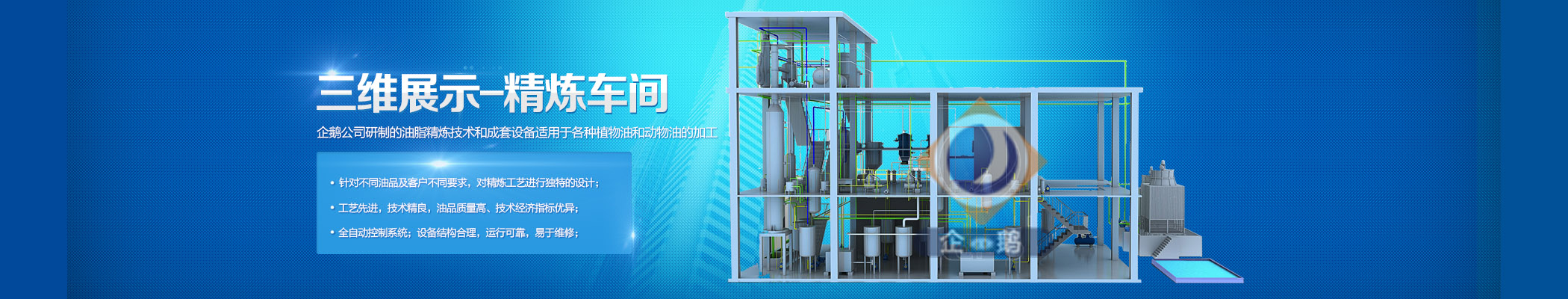 經過實地考察之后,我們選擇和鄭州企鵝合作。企鵝有自己專業的生產車間,能自主生產精煉油成套設備。企鵝在價格上有很大的優惠,產品在質量也有保證,值得合作的廠家。